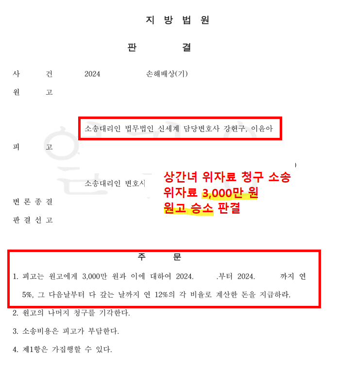 그 결과 의뢰인께서는 이혼에 이르지 않으셨음에도 피고로부터 위자료 3천만원을 지급받을 수 있는 판결을 받아 승소하실 수 있었습니다.