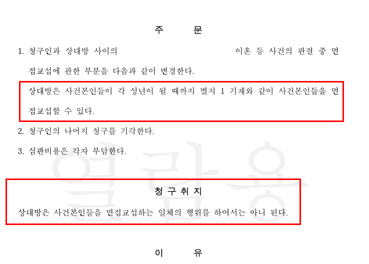 면접교섭 배제 청구 방어 성공사례! - 자유로운 면접교섭 유지 성공!
