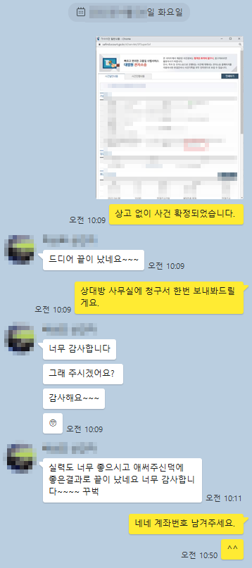 실력도 너무 좋으시고 애써주신 덕분에 좋은 결과로 끝이 났네요! 너무 감사합니다. 페이지 정보 최고관리자 작성일25-09-22 목록 본문 드디어 끝이 났네요~~~ 실력도 너무 좋으시고, 애써주신 덕분에 좋은 결과로 끝이 났네요. 너무 감사합니다.~~ 꾸벅! 목록