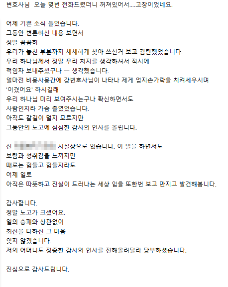 그동안 변론하신 내용 보면서 정말 꼼꼼히 우리가 놓친 부분까지 세세하게 찾아 쓰신거 보고 감탄했었습니다. 하나님께서 정말 우리…